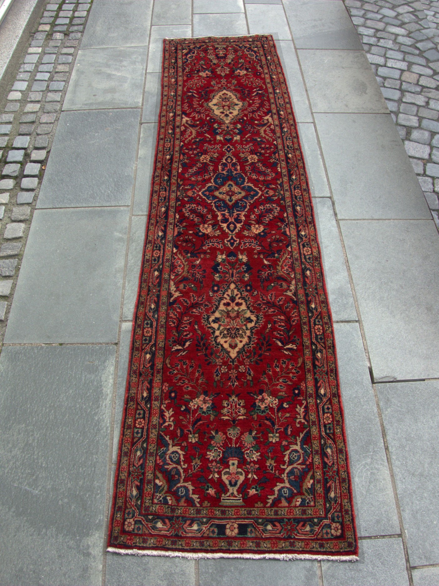 Teppet har ujevne mål (litt buet 6 cm). Dette er ikke uvanlig på eldre landsby og nomadetepper. Les mer her >