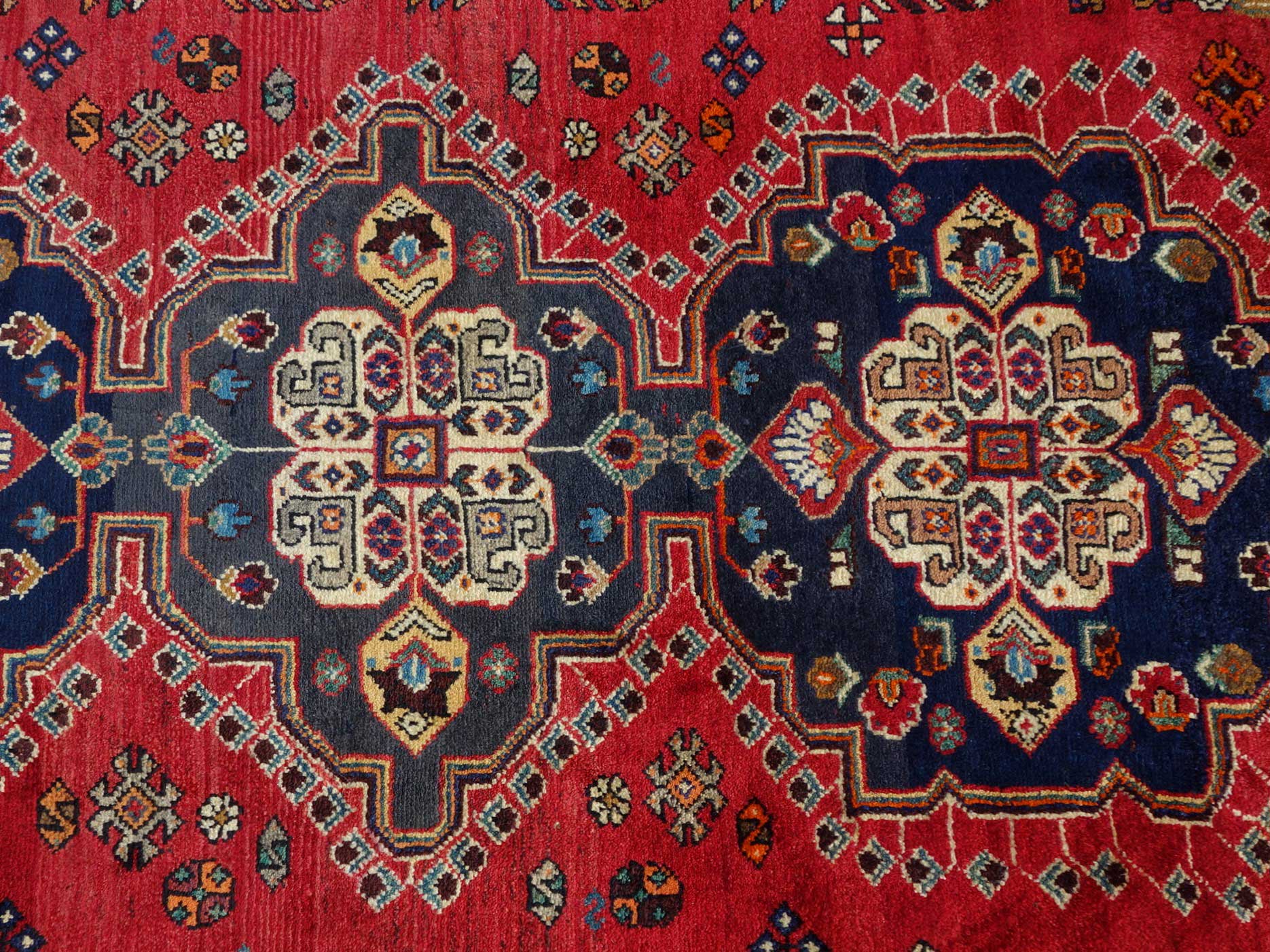 Klassisk og vakker Kashghai i fettrik ull med løver i hjørnene. Kashghai er Irans største og mest kjente nomade stamme. Kashghai teppene kan kjennetegnes ved ull luv på ull renning, de sterke dype fargene, samt bruk av tradisjonelle geometriske motiver.